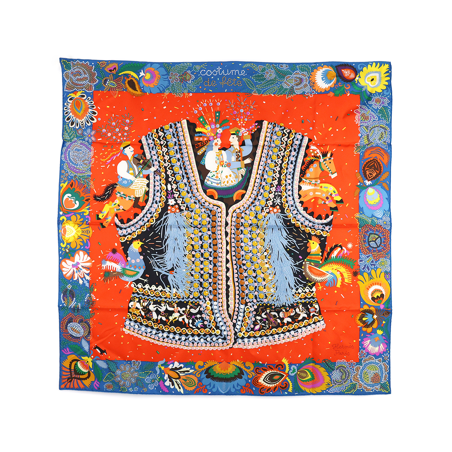 HERMES에르메스 코스튬 드 페테 까레 90 베흐미온/블루 아주르/멀티컬러