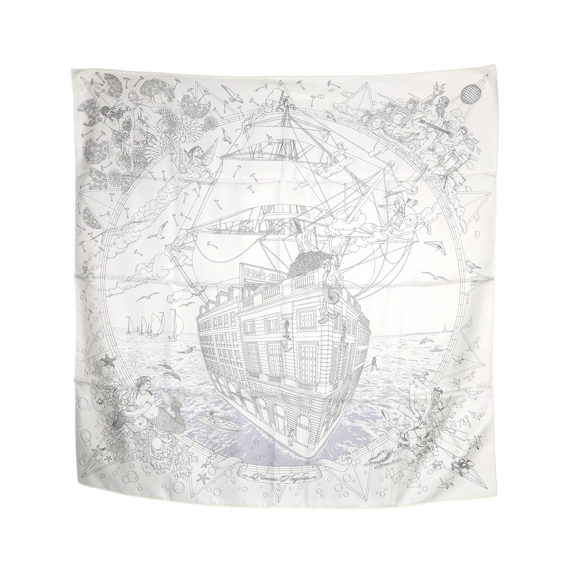 HERMES에르메스 플래그쉽 까레 90 블랑/블랙/그리스