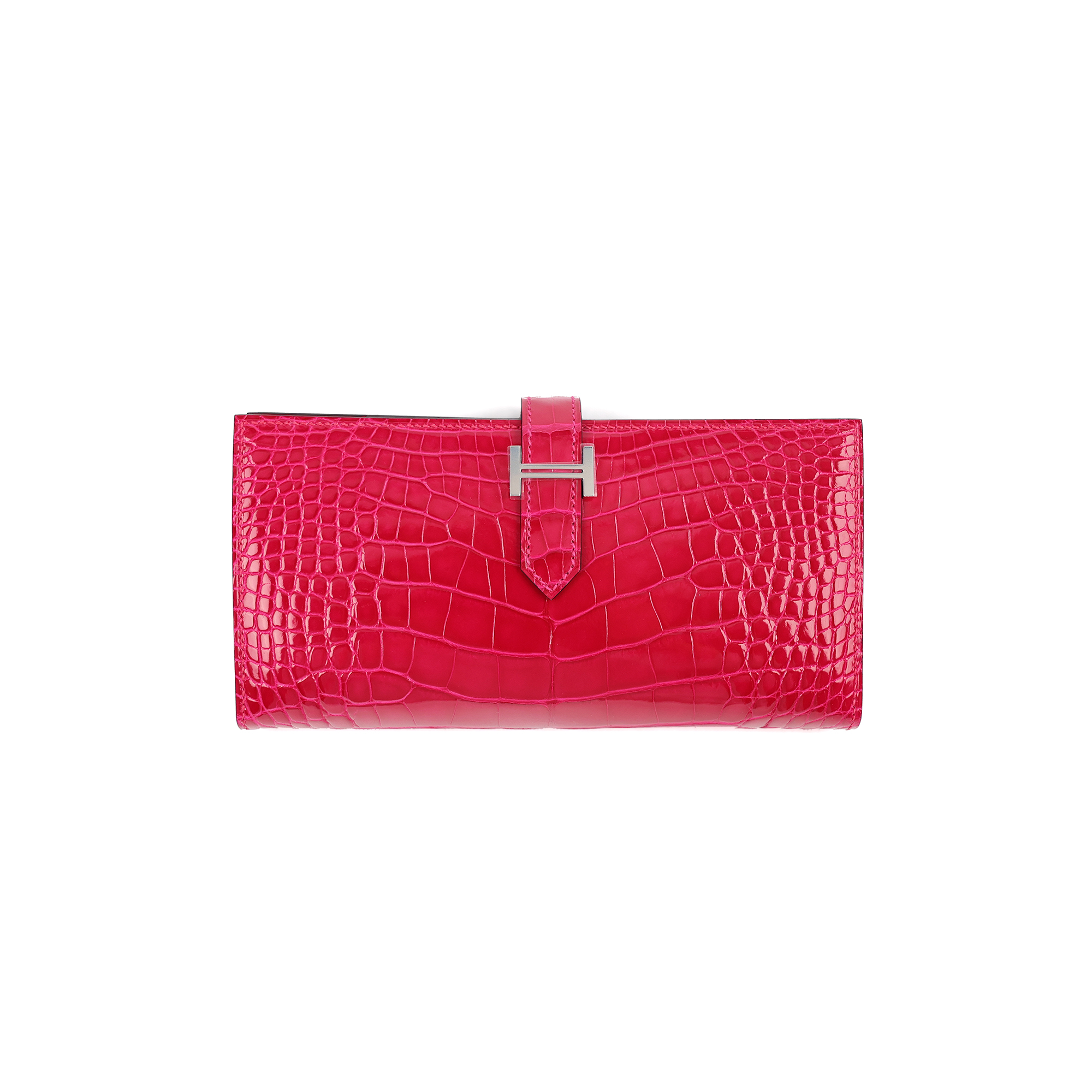 에르메스 베안 장지갑 프롬보아즈 엘리게이터 유광 은장