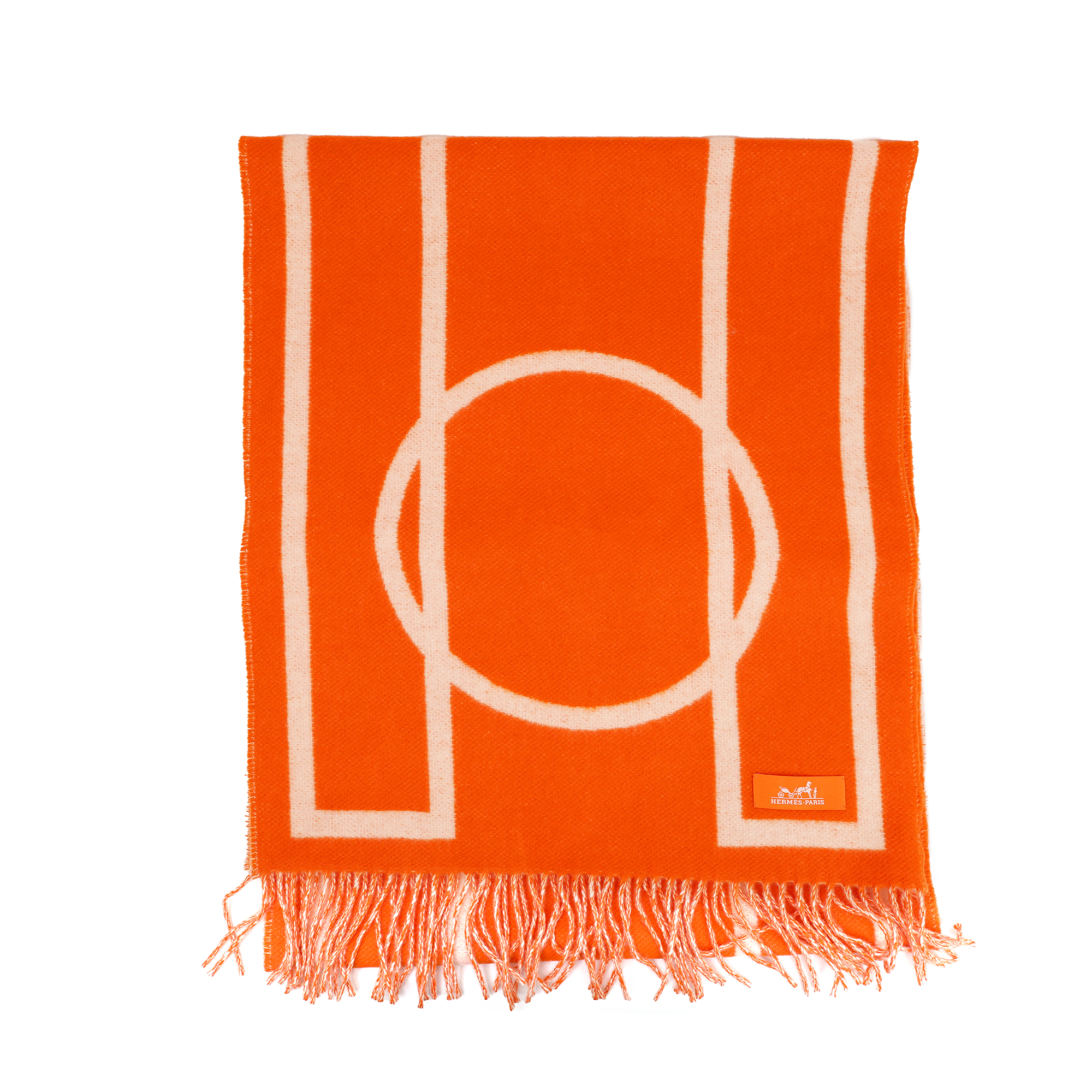 HERMES에르메스 카사크 필 오 페이스 머플러 오렌지/이보아르