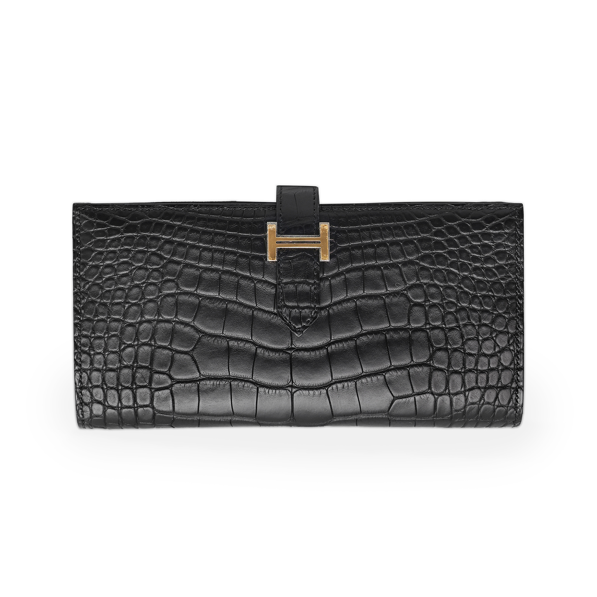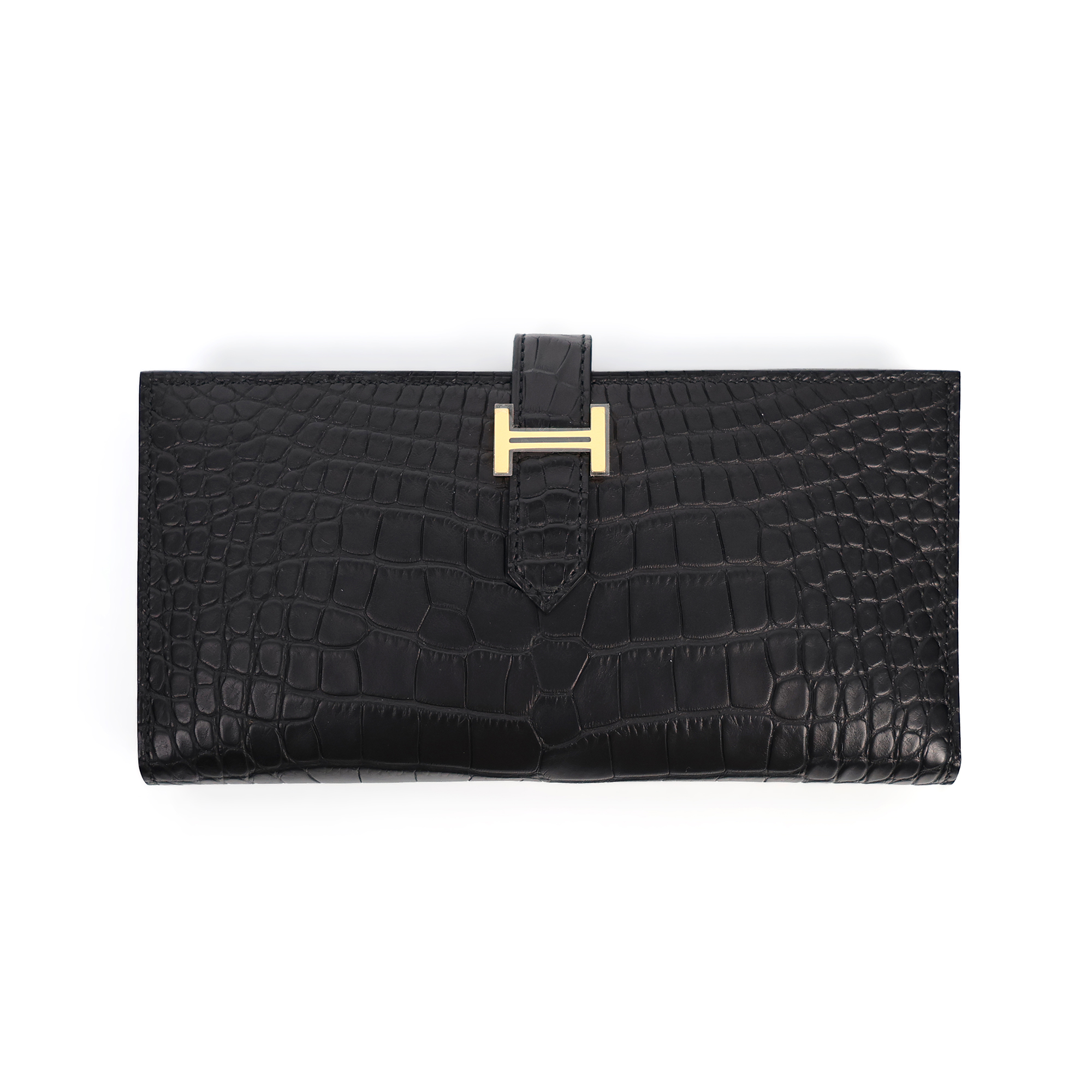 HERMES에르메스 베안 장지갑 블랙 엘리게이터 매트 금장